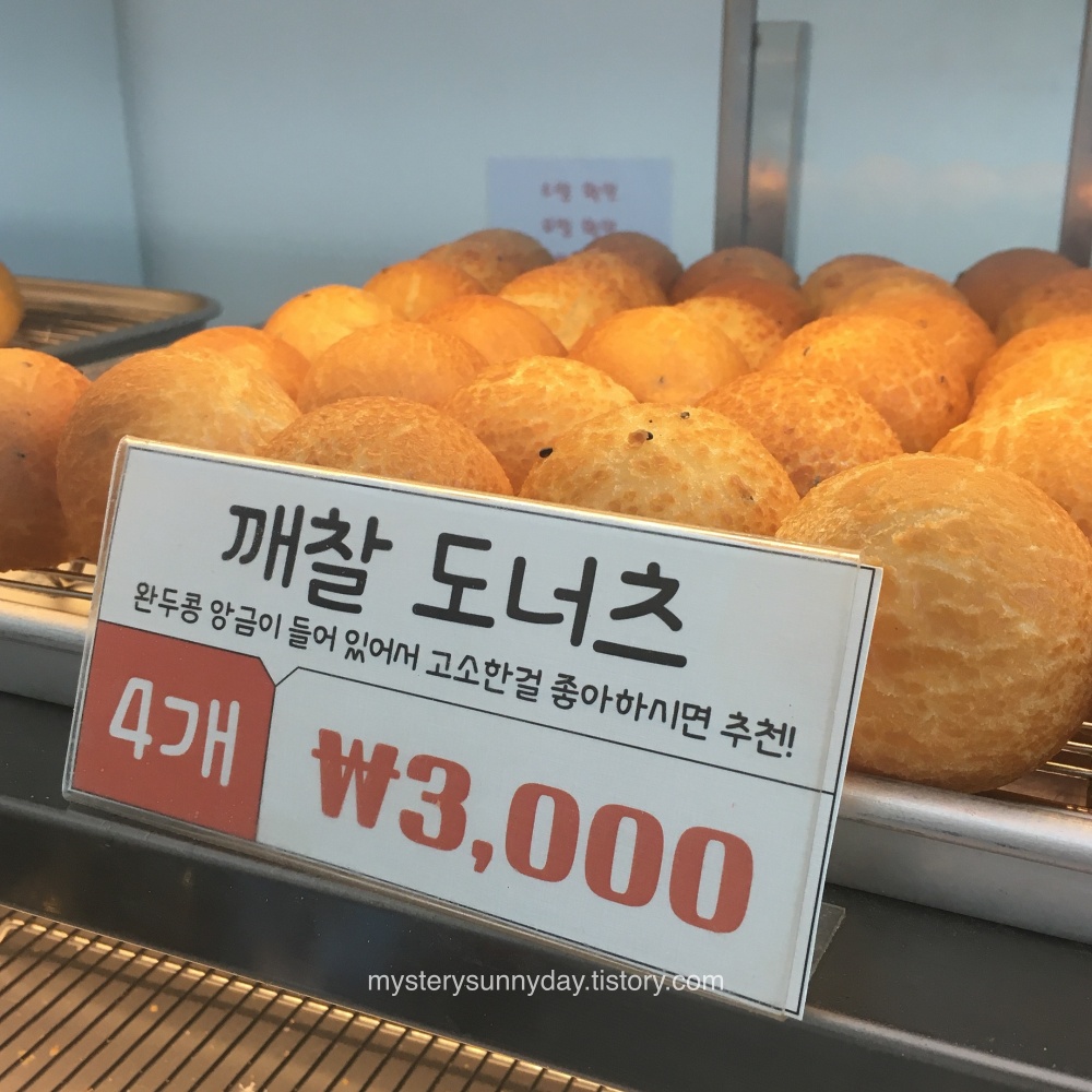 *깨찰도너츠: 완두콩 앙금이 들어있어 고소한 도넛